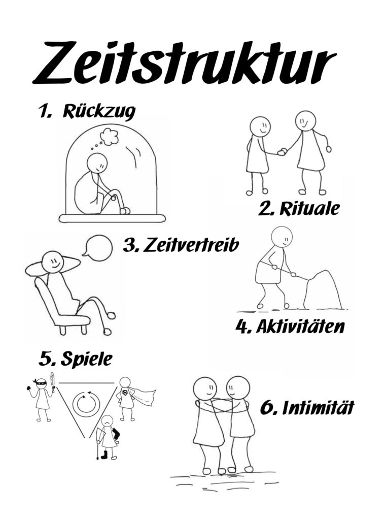 Die Zeitstruktur beschreibt, wie Menschen ihre Zeit verbringen – besonders im Kontakt mit anderen. Die Transaktionsanalyse unterscheidet dabei verschiedene Arten, wie wir Beziehungen gestalten: